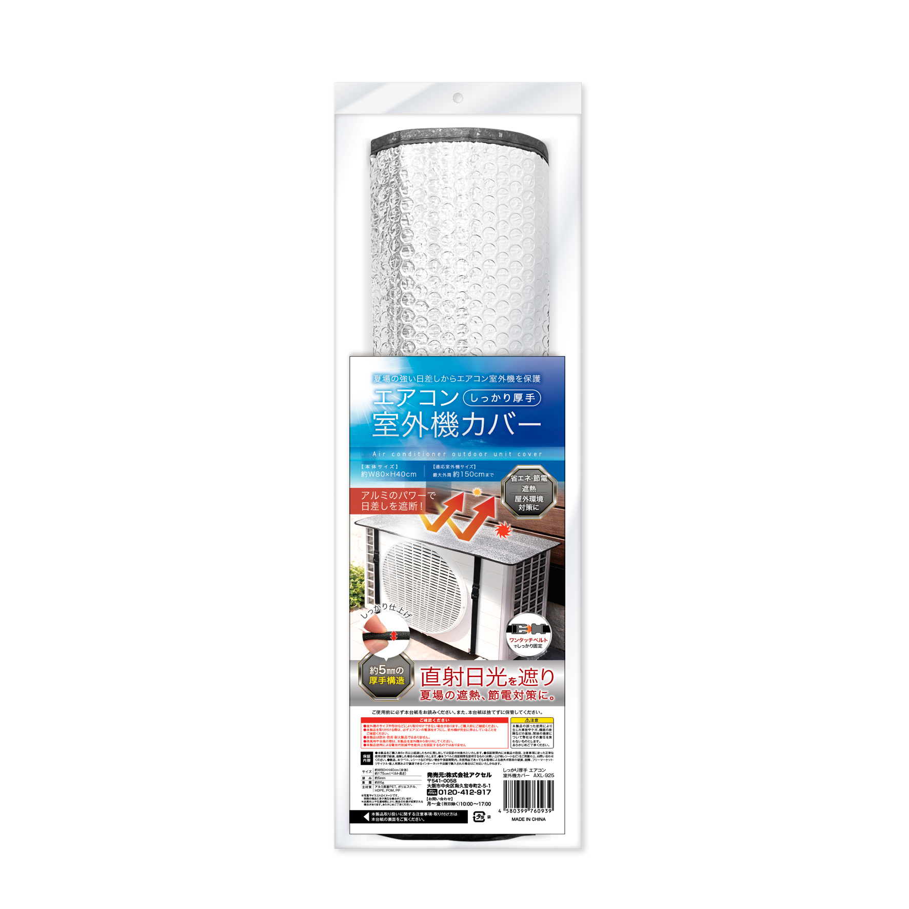 約5mmの厚手構造のカバーが夏場の強い日差しからエアコン室外機を保護します。夏場の遮熱、節電対策に。