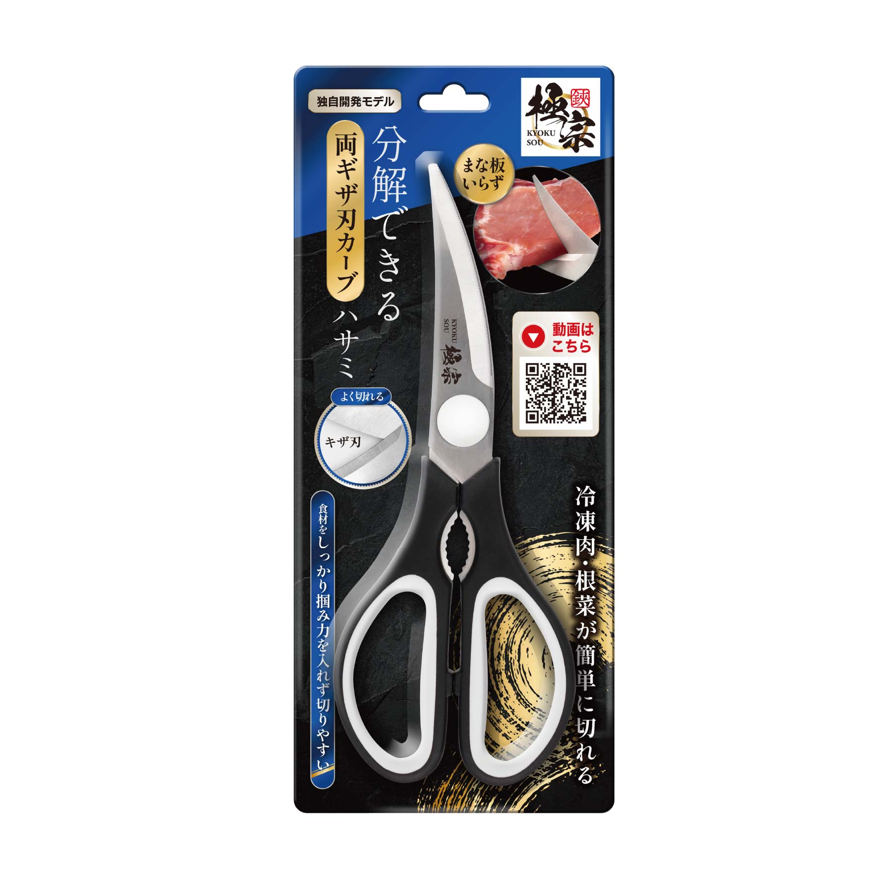 両ギザ刃で肉や魚をキャッチし滑らず簡単にカットが可能。まな板入らずで、時短調理に。薬味なども簡単に細かくカットができます。本体中央部は、くるみなどの殻割に。お手入れの際は分解して洗浄が可能です。