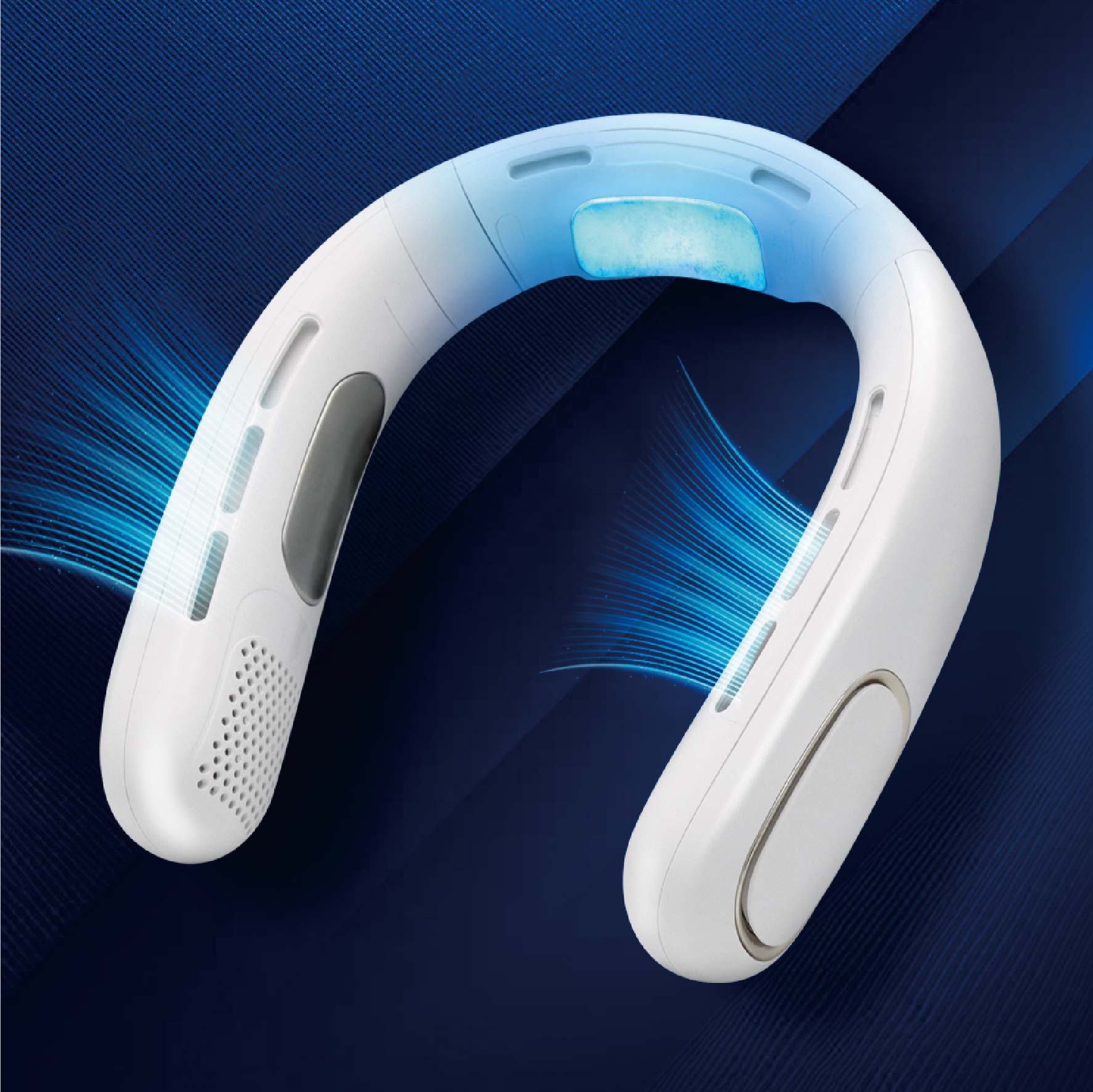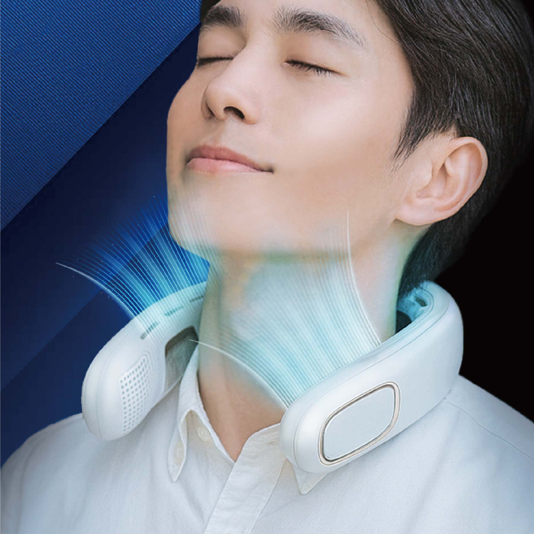 首から速攻涼しい首掛けファンです。冷却モード、送風モード搭載。髪などを巻き込みにくい設計で安心してお使いいただけます。また首掛けで両手が塞がりません。