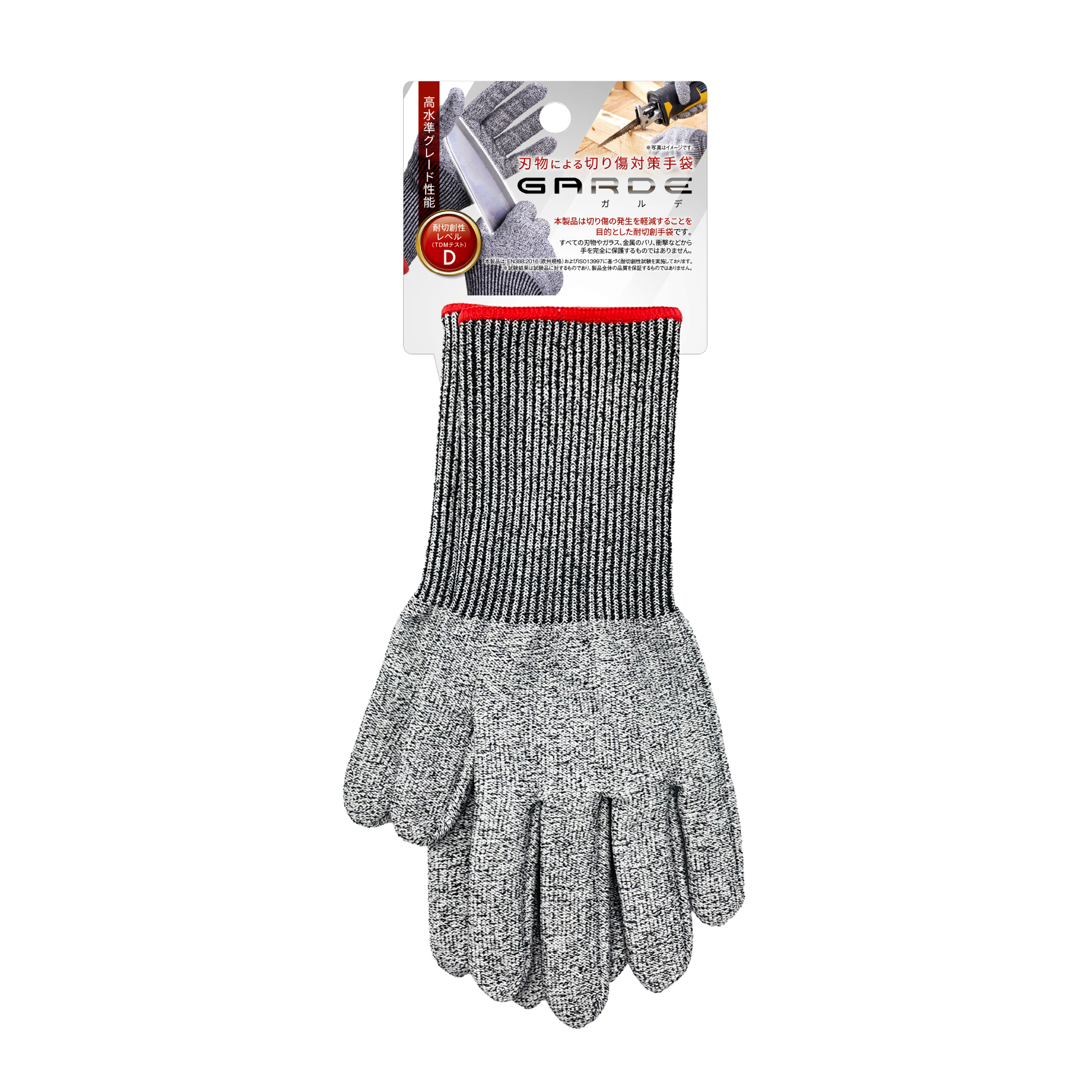 | その他備考 | ※本製品はEN388:2016(欧州規格)およびISO13997に基づく耐切創性試験を実施しております。 ※切り傷の発生を軽減することを目的とした耐切創手袋です。すべての刃物やガラス、金属のバリ、衝撃などから手を完全に保護するものではありません。 ※男女兼用フリーサイズ ※本製品は防水ではありません。 ※天然ゴム(ラテックス)が含まれています。アレルギーのある方は使用しないでください。 ※耐電性または電気に対して絶縁性はありませんので、電気作業には絶対に使用しないでください。 |