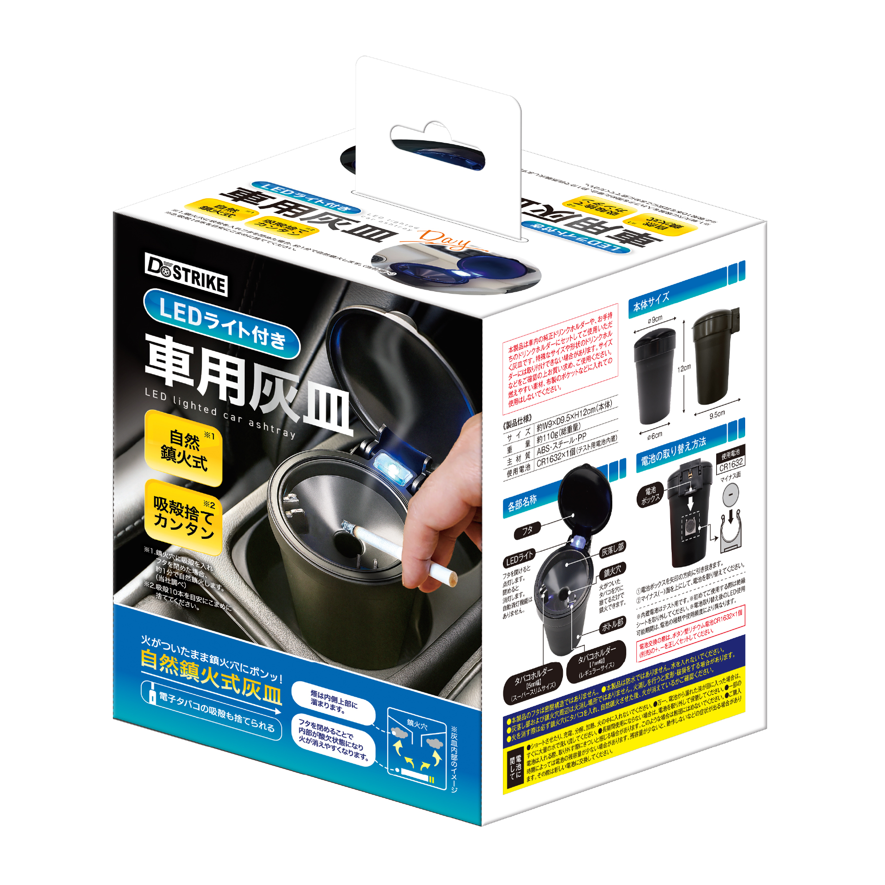 LEDライト付き車用灰皿 [ AXL-822 ] カー用品LEDライトDo STRIKE(ドストライク)灰皿 LEDライトが付いた自然鎮火式の車用灰皿です。 実入り数 48個/24個 発送単位 48個 参考上代 設定中 カラー ブラック サイズ 約W9×D9.5×H12cm(本体) 約W9.5×D10.5×H13cm(箱) 重 量 約110g(本体) 主材質 ABS・スチール・PP 品 番 AXL-822 JANコード 4580399759841 保証書 有 取扱説明書 無 その他備考 電源:ボタン型リチウム電池CR1632×1個(テスト用電池付) 動画を見る ✖️ 弊社で公開している動画はYouTubeから視聴できます。 公式youtubeチャンネルを開く マニュアルをDL ✖️ ご利用規約にご同意いただいた上でご利用ください。 製品の仕様は改良等で予告なく変更する場合がございます。 取扱説明書の一覧ページを開く 製品画像をDL ✖️ 製品ダウンロードの一覧ページを開くには当社指定のパスワードが必要です。 製品画像はzipファイル形式で圧縮しています。 ご利用規約にご同意いただいた上でご利用ください。 製品の仕様は改良等で予告なく変更する場合がございます。 製品画像ダウンロードの一覧ページを開く 企画書をDL ✖️ 企画書ダウンロードの一覧ページを開くには当社指定のパスワードが必要です。 企画書はjpgファイル形式で圧縮しています。 ご利用規約にご同意いただいた上でご利用ください。 製品の仕様は改良等で予告なく変更する場合がございます。 企画書ダウンロードの一覧ページを開く 生産について