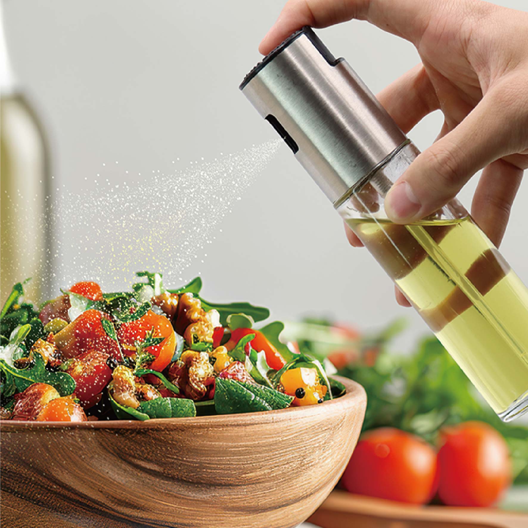 片手でオイルをスプレーできるボトルです。スプレーの際は、余分な油を使用せず健康的な料理が可能。また油引要らずでコンロ周りがスッキリします。