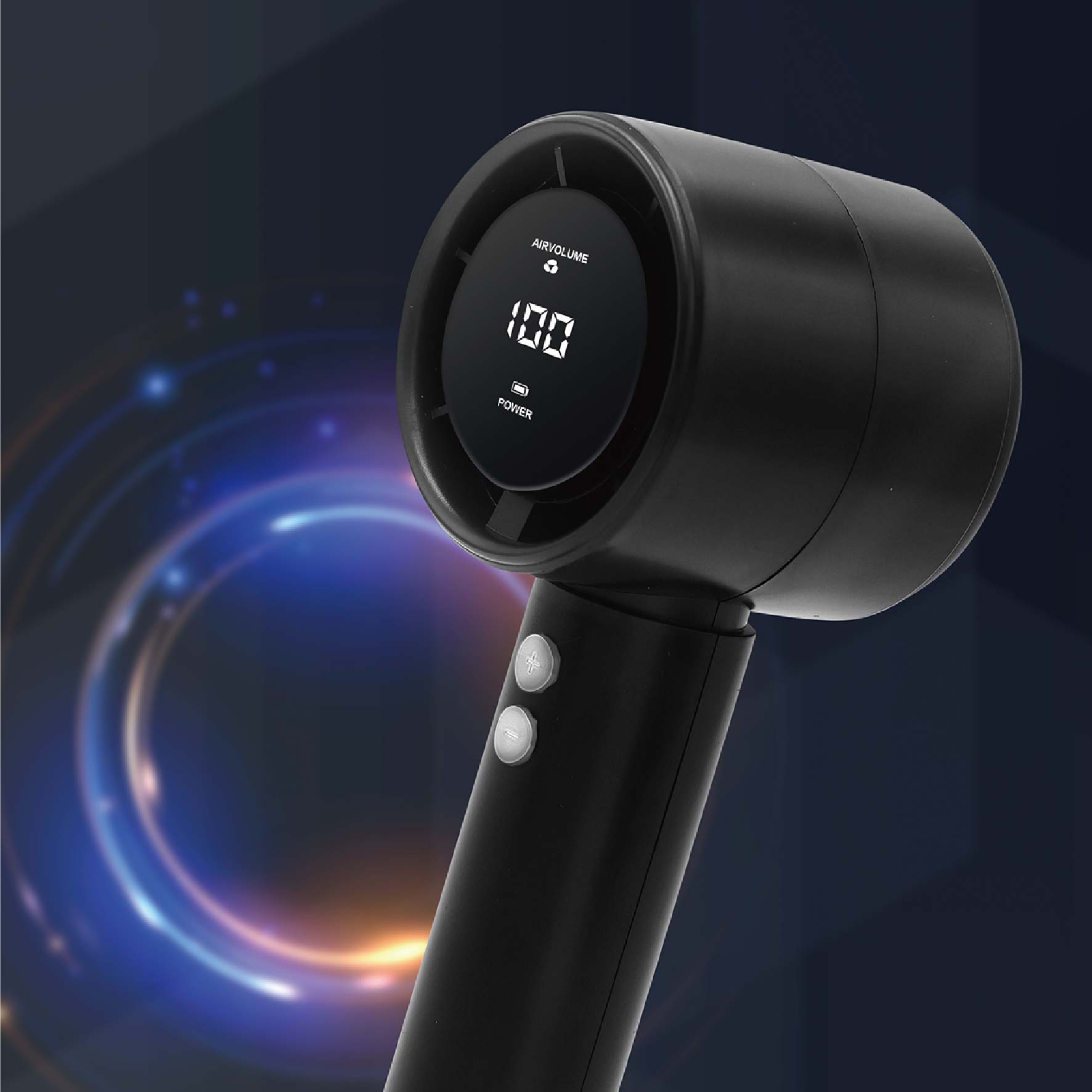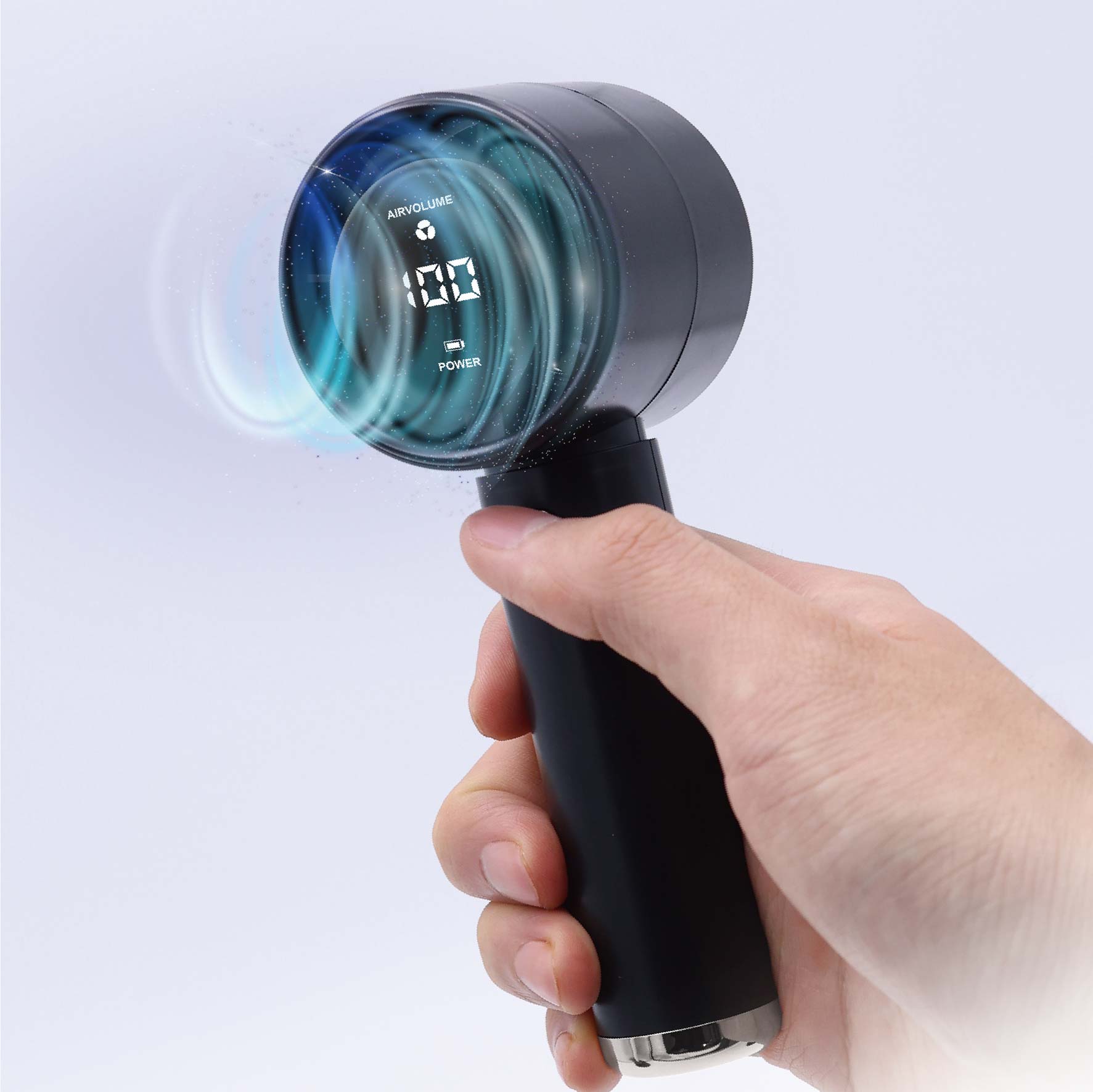 100段階の風量調節で、微風から強風まで自在にコントロールできる高性能ハンディファン。