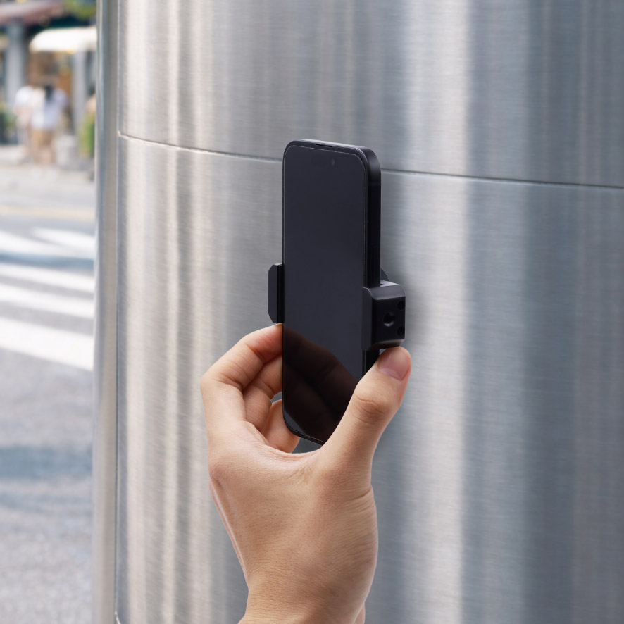 金属製の壁や柱にマグネットで強力吸着し、三脚不要で手軽に撮影ができるスマートフォン専用スタンドです。本体を伸ばしてお手持ちのスマートフォンを挟み、しっかり固定します。1/4ネジ穴付きで、三脚や照明に取り付け可能。縦でも横でも使用可能。